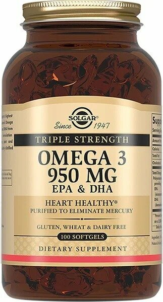 "Solgar Omega-3 950mg EPA & DHA" - это высококачественный продукт, разработанный для поддержания здоровья сердца и сосудов. Каждая упаковка содержит 100 капсул, каждая из которых содержит 504 мг эйкозапентаеновой (EPA) и 378 мг докозагексаеновой (DHA) кислот. Омега-3 жирные кислоты, такие как EPA и DHA, имеют ключевое значение для здоровья сердечно-сосудистой системы. Они помогают снизить уровень вредного холестерина, поддерживают нормальное кровяное давление, улучшают работу сердца и сосудов, а также снижают риск развития сердечно-сосудистых заболеваний. Капсулы Solgar Omega-3 950mg EPA & DHA легко принимать и усваивать. Они изготовлены из натуральных ингредиентов высокого качества, не содержат искусственных красителей или консервантов. Каждая капсула содержит оптимальную дозу EPA и DHA, обеспечивая максимальную эффективность и результаты. Поддерживайте здоровье своей сердечно-сосудистой системы с помощью "Solgar Omega-3 950mg EPA & DHA". Этот продукт идеально подходит для тех, кто стремится к здоровому образу жизни и хочет укрепить свое сердце и сосуды. Не упустите возможность получить все преимущества омега-3 жирных кислот от известного бренда Solgar! Продукт не является лекарственным средством. Не рекомендовано использовать продукцию лицам, не достигшим 18 лет. Перед применением проконсультируйтесь со специалистом. Не превышайте рекомендуемую дозировку.