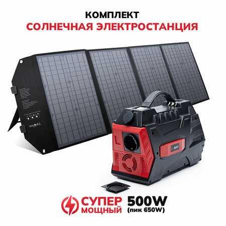 Универсальная мини солнечная электростанция состоит из портативного накопительного аккумулятора Elway Energy Box E05 - 500w (пик 650w), 296Wh и солнечной панели Elway Solar 100w. За световые сутки от солнечной панели Elway Solar 100w заряжается на 60%-100%. Зависит от времени года, облачности и расположения. Просто подключите к аккумулятору солнечную панель (переходники идут в комплекте) и накапливайте солнечную энергию. Аккумулятор Elway Energy Box E05 имеет встроенную розетку 220v, 4 выхода usb и автомобильный выход на 12v. Солнечная панель имеет 2 выхода usb, один из них имеет формат быстрой зарядки QC3.0, 1 выход DC – 5.5мм x 2.1мм, красный диод оповещает о работе панели. Портативная солнечная панель Elway Solar 100w можно использовать, как самостоятельная панель, можно заряжать телефоны или другую технику. Так и вместе с аккумулятором Elway. У аккумулятора имеется функция сквозной зарядки. Можно заряжать аккумулятор от солнечных панелей и одновременно пользоваться выходами usb аккумулятора или солнечной панели, заряжая телефоны и другие гаджеты. Сквозная зарядка работает только с выходами usb и не работает с розеткой 220v и 12v. Уникальные размеры и возможности! • 4 выхода usb для зарядки телефонов и других гаджетов; • сквозная зарядка USB: можно заряжать аккумулятор от розетки или солнечных панелей и одновременно пользоваться выходами usb для зарядки гаджетов. • яркий фонарь - очень удобно иметь под рукой хороший фонарь; • несколько способов зарядить батарею: от прикуривателя 12V (опционально), от портативной солнечной панели (опционно), от сети 220V через блок питания 15V; • выход под европейскую розетку 220V - это главная уникальная особенность! Можно подключить любое устройство с потребляемой мощностью не более 500W, пик 700w: автомобильный холодильник, ноутбук, освещение, даже маленький телевизор - что угодно! • 3 степени защиты: от превышения нагрузки, от перезаряда, от перегрева - встроенный вентилятор охлаждения запускается автоматически при повышении температуры устройства. Отличается от других моделей аккумуляторов Elway высокой допустимой мощностью подключаемых устройств 500w (пик 700w). Подходит для питания и зарядки различных мощных устройств: • ноутбука; • освещения; • телефонов; • планшетов; • автомобильного и бытового холодильника; • большого телевизора; • проектора; • квадрокоптера; • музыкальных колонок; • фумигатор от комаров; • электросамоката; • фото и видеооборудования; • вентиляторов; • небольших насосных станций; • маленьких обогревателей; • одеяла с подогревом; • мультиварки; • походного чайника; • строительного электрооборудования. и других устройств мощностью не более 500w. Одновременно можно подключать несколько устройств!
