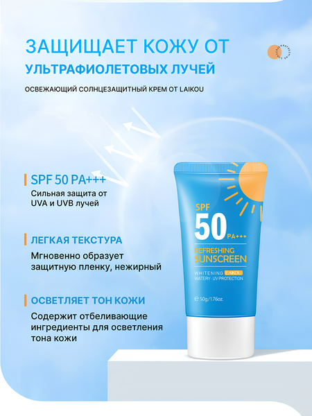 Солнцезащитный крем LAIKOU, SPF 50, PA+++, защита от UVA, для всех типов кожи, 50 мл