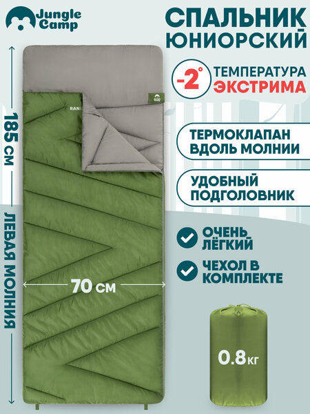 Легкий и очень удобный спальник-одеяло для детей и подростков Jungle Camp Ranger Comfort JR предназначен для походов и кемпинга преимущественно в летний период. Плоский капюшон с подголовником обеспечивают более комфортный сон. Предусмотрен внутренний карман для хранения телефона и других ценных вещей. Благодаря небольшому размеру и весу спальник занимает мало места в рюкзаке - подросток легко может нести его сам. ОСОБЕННОСТИ СПАЛЬНИКА: Удобный плоский капюшон Молния имеет два замка с обеих сторон Небольшой вес Термоклапан вдоль молнии Молния с левой стороны Внутренний карман Чехол для удобного хранения и переноски Характеристики: Цвет: зеленый t° комфорт: 14°C t° лимит комфорта: 8°C t° экстрим: -2°C Материал: 100% полиэстер Внутренний материал: Полиэстер Pongee Утеплитель: Hollowfiber 1х200 г/м2 Размер: (160+25) см х 70 см Размер в чехле: 20 см х 20 см х 32 см Вес: 0,8 кг