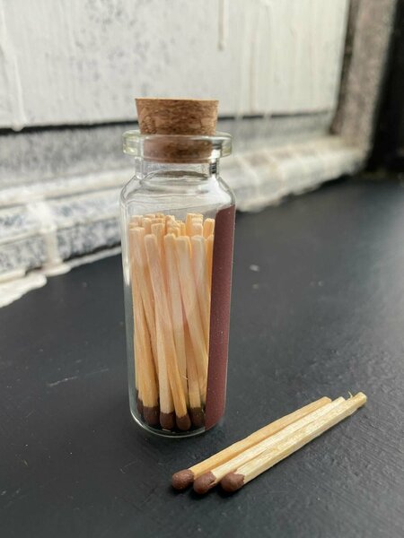 Спички, 30 штук, в стеклянной баночке с чиркалом, пробковая крышка