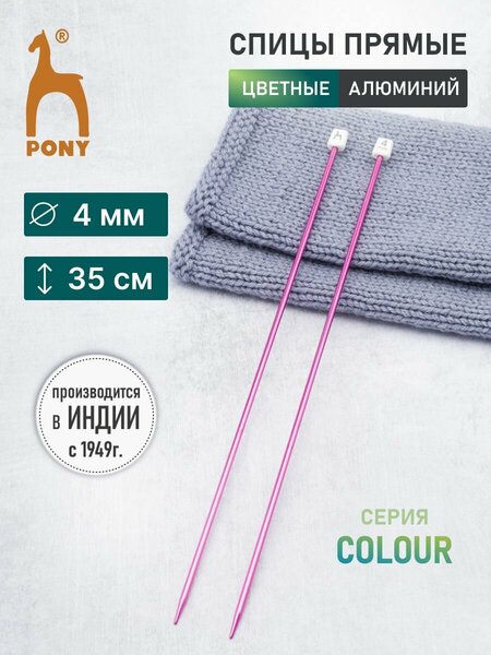 Спицы для вязания прямые PONY COLOUR - это яркий и удобный инструмент, идеально подходящий для вязания. Спицы изготовлены из легкого и прочного алюминия: это сочетание позволит часами наслаждаться процессом вязания без напряжения в руках. Легкий алюминий обеспечит вам комфорт даже при работе над крупными проектами. Особого внимания заслуживает технология обработки поверхности спицы – цветное глянцевое покрытие (анодирование). Эта процедура защищает алюминий от коррозии, продлевает срок службы инструмента и обеспечивает плавное скольжение пряжи. Яркий и эстетичный цвет не только радует глаз, но и помогает быстро найти нужные спицы в вашей шкатулке рукоделия. Спицы практически не гнутся, сохраняя свою форму даже при интенсивном использовании. Безупречно гладкая поверхность спиц предотвращает зацепки и образование узелков. Ваша нить будет двигаться свободно и плавно, создавая ровное полотно. Слегка закругленные концы спиц мягко скользят между петлями, не цепляясь за волокна. Кроме того, закругленные концы не травмируют пальцы. Спицы PONY снабжены нестираемой маркировкой с указанием размера, позволяя легко выбирать нужный инструмент для конкретного проекта. Вязание с помощью спиц PONY COLOUR превратится в настоящее удовольствие, даря радость творчества и вдохновляя на создание уникальных и неповторимых вещей.