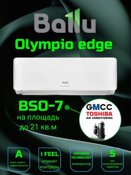 Сплит-система Ballu Olympio Edge BSO-07HN8_22Y, домашний настенный кондиционер, комплект для помещения до 20 кв. м.
