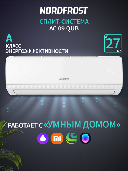 Сплит-система NORDFROST AC 09 QUB, хладагент R32, регулировка направления воздушного потока, функция I feel, белый