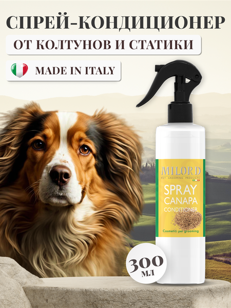 Спрей-кондиционер для собак Canapa MILORD для распутывания колтунов, снятия статики и увлажнения шерсти, Италия, 300 мл