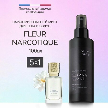 Спрей мист для волос и тела парфюмированный Fleur Narcotique- помощник в уходе за собой. Нежный и освежающий женский спрей для тела идеально подходит для создания легкой ароматической вуали в течение дня. Его нежная формула увлажняет и питает кожу, оставляя ощущение свежести и комфорта. Мист для тела позволит почувствовать себя уверенно благодаря неповторимым свойствам. Уникальная формула спрея для волос создана с помощью качественных компонентов и нежно заботится о коже. Сочетание полезных витаминов делает уходовую косметику эликсиром красоты. Насладитесь стойким, приятным ароматом на протяжении дня. Объем флакона 100 мл удобен в использовании. Благодаря компактным размерам увлажняющего спрея для тела, вы сможете взять аромаспрей с собой. Дарите себе и своей коже наслаждение и лучший уход для тела каждый день, благодаря парфюмированному арома спрею. Чувствуйте уверенность и комфорт ежедневно.