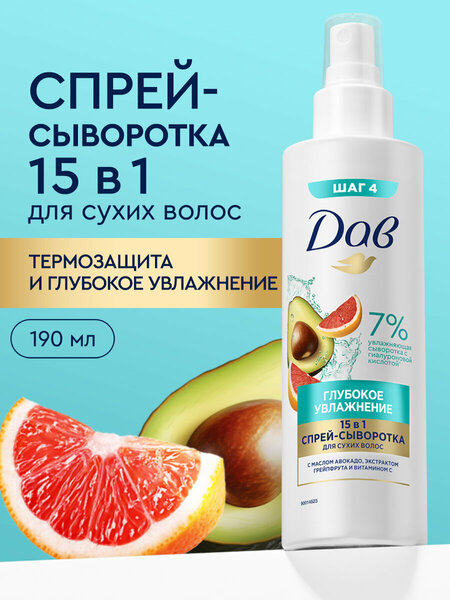 Дав Спрей-сыворотка для волос увлажняющая для легкого расчесывания 15 в 1 термозащита, 190 мл
