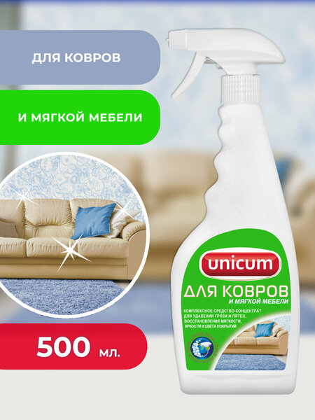 Концентрированное специализированное средство Unicum для комплексной чистки ковров, ковровых покрытий, обивки мягкой мебели и автомобилей.