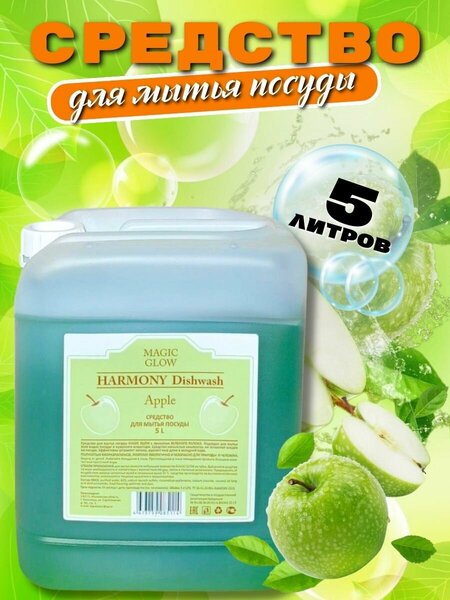 Средство для мытья посуды MAGIC GLOW с ароматом "Яблоко" предназначено для мытья различных видов посуды и кухонного инвентаря. Оно полностью смывается, не оставляет следов на посуде, эффективно устраняет запахи и удаляет жир в холодной воде. Средство выпускается в удобном флаконе с крышкой флип - топ 500 мл, 800 мл. и ёмкости 5 л. Продукция производится из высококачественного сырья с натуральными компонентами. Средства MAGIC GLOW полностью биоразлагаемы, поэтому они экологичны и безопасны для природы и здоровья человека, что подтверждено сертификатами эко и био безопасности. Вся продукция сертифицирована и соответствует Российским и международным стандартам. Способ применения: Нанести небольшое количество средства на губку, вспенить, вымыть посуду вспененным составом, смыть водой.