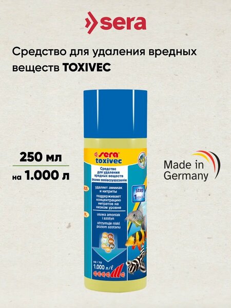 Кондиционер для воды Sera TOXIVEC 250 мл, удаление токсинов и вредных веществ из воды, подготовка водопроводной воды.