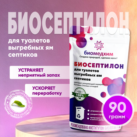 "Биосептилон" - это экологически чистый и не патогенный для людей, растений и животных продукт для ускоренной переработки фекалий и бытовых отходов (жиры, белки, крахмал, бумага, отходы пищи, овощей и другое содержимое органического происхождения) в септиках, туалетах и выгребных ямах. В основе препарата натуральные микробные ферменты и сильнодействующая композиция 10 штаммов сапрофитных специально обученных культур бактерий природного происхождения, находящихся в высушенном виде на особом носителе. Результатом применения "биосептилон" является: - локализация неприятного запаха, - полное разложение фекальных отходов и тяжелых масс с образованием углекислого газа и легкорастворимого осадка, представляющего собой азотное удобрение. Расход : 15 грамм рассчитано на 30-40 дней для резервуара 2 м3 В состав «биосептилона» входят: 1. Олигонитрофильные бактерии – разлагают фекальные отходы и другие белковые соединения, образуя богатый органическим азотом гумус, что способствует высокому качеству образующегося органического удобрения; 2. Молочнокислые бактерии – подавляют развитие болезнетворных бактерий, которые могут попасть в туалеты, септики и выгребные ямы, деодорируют отходы, удаляя неприятные запахи, обеспечивая перерабатываемый отход легкодоступными органическими соединениями в виде лактатов. 3. Целлюлозолитические бактерии – активно разрушают остатки бумаги и других целлюлозосодержащих фрагментов, попавших в выгребную яму, до легкодоступных углеводных субстратов, которые успешно перерабатываются молочнокислыми бактериями.