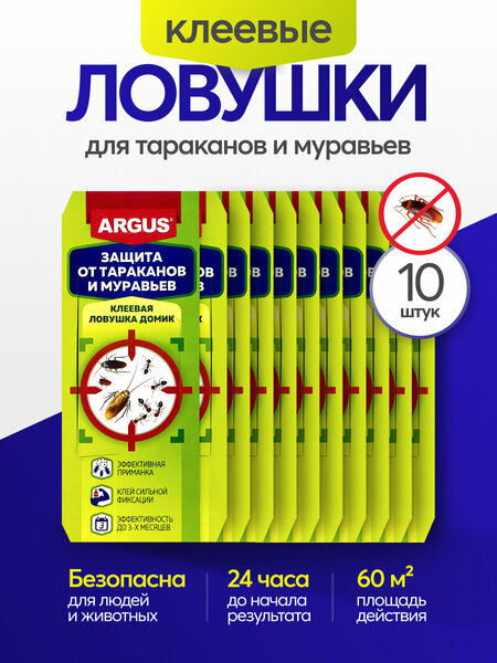 Средство от тараканов и муравьев Argus, 10 штук, ловушки клеевые от насекомых. Отрава Аргус от вредителей с феромоновой таблеткой (приманкой). Защита от насекомых