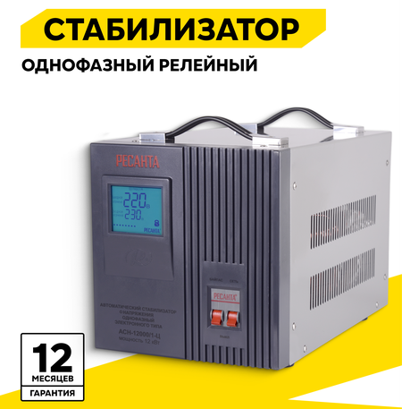 Стабилизатор напряжения РЕСАНТА АСН-12000/1-Ц - это однофазный релейный стабилизатор, предназначенный для настенного размещения. Он выравнивает входящее напряжение и защищает электрические приборы от высоких скачков напряжения. Благодаря металлическому корпусу внутренние узлы устройства защищены от механических повреждений. Стабилизатор оснащен цифровым дисплеем, который показывает основные параметры работы устройства. Для эффективного охлаждения в конструкции прибора предусмотрен вентилятор. Функция "Байпас" позволяет выключить устройство и подключить нагрузку в обход стабилизатора к питающей сети одним нажатием кнопки. Стабилизатор имеет серый и черный цвет, его размеры составляют 300х460х230 мм, а вес - 20,8 кг. Активная мощность устройства составляет 12000 Вт, а скорость стабилизации - 35 В/с. Устройство имеет защиту от короткого замыкания, помех и перегрева. Стабилизатор РЕСАНТА АСН-12000/1-Ц обеспечивает стабильное и безопасное питание для ваших электроприборов.