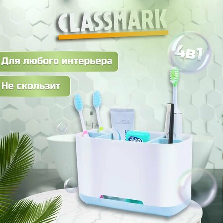Cтакан для зубных щеток и пасты Classmark подставка и органайзер, держатель контейнер с разделителем и сливом воды, для ванной комнаты, регулируемые секции, пластиковый