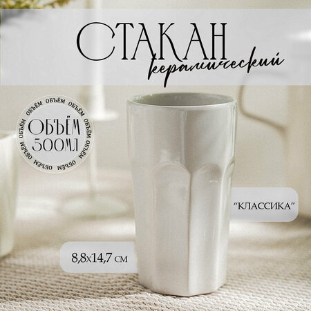 Стакан Доляна «Классика» - воплощение элегантности и практичности на вашем столе! Окунитесь в мир утонченного стиля и комфорта с керамическим стаканом Доляна «Классика». Этот белоснежный стакан объемом 500 мл и размерами 8.8x14.7 см станет идеальным дополнением к вашему сервизу и подарит незабываемые моменты наслаждения любимыми напитками. Преимущества стакана Доляна «Классика»: Изысканный дизайн: Классический белый цвет и гладкая поверхность стакана подчеркнут красоту любого напитка, будь то чай, кофе или свежевыжатый сок. Высокое качество керамики: Изготовлен из прочной и экологически чистой керамики, что обеспечивает долговечность и безопасность использования. Теплоизоляция: Керамика сохраняет тепло напитка, позволяя наслаждаться им долгое время, не боясь обжечься. Удобство использования: Благодаря своим размерам, стакан удобен для ежедневного использования и подходит для различных напитков, от горячих до холодных. Легкость в уходе: Стакан легко моется как вручную, так и в посудомоечной машине, что делает его удобным для ежедневного использования. Универсальность: Подходит для использования как в домашних условиях, так и на официальных мероприятиях, подчеркивая ваш вкус и статус. Стильный акцент: Этот стакан станет прекрасным дополнением к вашему столу, добавляя ему элегантности и завершенности. Отличный подарок: Стакан Доляна «Классика» станет прекрасным подарком на любой праздник, будь то день рождения, новоселье или просто как знак внимания и заботы. Подарите себе и своим близким моменты наслаждения с керамическим стаканом Доляна «Классика»! Не упустите возможность сделать ваше питьевое время еще более приятным и изысканным. Закажите стакан Доляна «Классика» прямо сейчас и наслаждайтесь каждым глотком, проведенным с элегантностью и комфортом!