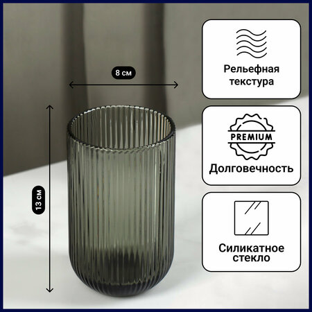Стакан стеклянный Magistro «Грани», 400 мл, 8×13 см, цвет графит