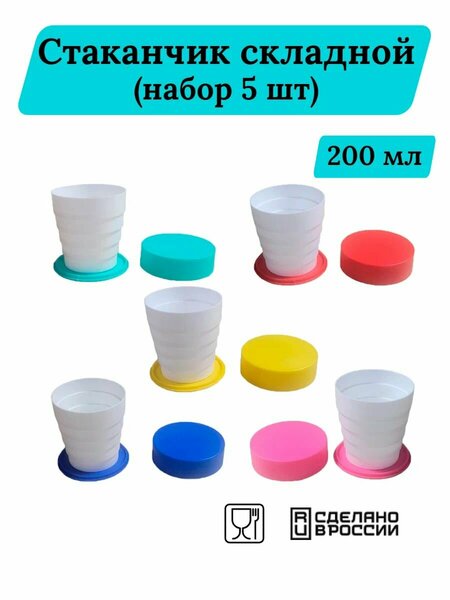 Набор пять пластмассовых цветных многоразовых стаканчиков с крышкой, соответствует требованиям ГОСТ Р 50962-96 - удобная емкость для воды, различных напитков. Он производится из сертифицированного материала: пластмассы (АВС). Лучшая походная посуда для кемпинга и туризма во время отдыха. Телескопическая конструкция отличается компактностью. В сложенном виде пустое изделие занимает минимум места. Стаканчики походные пластиковые складные удобно брать с собой на работу, в командировку или путешествие. Их можно положить в бардачок машины, сумку, рюкзак и даже в карман. Крышка защитит поверхности от пыли, загрязнений. Туристический многоразовый с крышкой – незаменимый элемент в дорожном наборе для путешествий. Пластмассовые для безалкогольных холодных напитков предлагаются в разных цветах. Подходит для отдыха с семьей, детьми, с палатками, на природе в выходные с друзьями или коллегами. Они напоминают раскладной стаканчик СССР, но отличаются прочностью, практичностью, привлекательным видом Во время отпуска в сосновом бору, летом – похода на природу, командировки в другой город или поездки в авто по городу возникает естественная необходимость утолить жажду. В такой ситуации пластиковые стаканы для холодных напитков незаменимы. Они подходят для школьников. Любой ребенок постоянно хочет пить. Классические кружки для детей громоздкие. Их неудобно класть в рюкзак и брать с собой. Складной для воды, сока, для детей в школу – гигиеничное и удобное решение. Для пикника, путешествий с семьей, интересного времяпрепровождения в компании друзей лучше приобрести набор – несколько штук. Для коктейлей, газировки, можно приобрести в подарок женщине, мужчине, ребенку. Практичная утварь выступит в качестве приятного знака внимания. Многоразовый складной пластиковый походный стаканчик – дорожный вариант для любителей отдыха на природе.