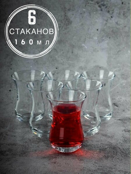 Стаканы для чая и кофе Армуды, набор из 6 шт. Турецкие стаканы 160 мл