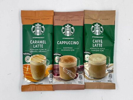 Starbucks Premium Instant. Попробуйте микс из 3 видов растворимого кофе - Cappuccino, Caffe Latte, Caramel Latte. Starbucks создали эти насыщенные напитки, которые вы можете приготовить дома, используя высококачественные зерна 100% арабики. 1. Добавьте 1 пакетик на чашку. 2. Залейте 180 мл горячей воды. Дайте кипящей воде отстояться в течение 30 секунд перед использованием, оптимальная температура 85°C. 3. Хорошо перемешайте, откиньтесь на спинку кресла и наслаждайтесь.