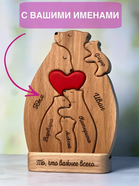 Информация для гравировки, запрашивается после оформления в открывшемся чате заказа. Ищете идеальный подарок для своей подруги, мамы, сестры, жены или дочери? Что может быть лучше, чем оригинальный и необычный подарочный набор? Деревянная статуэтка Семья медведей - идеальный выбор! Этот прекрасный подарок подойдет для любого случая: рождение ребенка, день рождения, свадьба, годовщина, новоселье, юбилей и многие другие. Статуэтка символизирует семейное счастье и уют, и станет прекрасным декором для интерьера вашего дома. Изготовленная из качественного дерева, статуэтка Семья медведей имеет оригинальный дизайн и интересное оформление. Ее уникальность заключается в том, что она также является пазлом. Вы сможете собрать эту статуэтку своими руками и наслаждаться процессом создания шедевра. Этот прикольный и креативный сувенир станет прекрасным символическим подарком, который будет напоминать о вашем отношении к получателю. Он подходит как для мужчин, так и для женщин, идеально подойдет для тех, кто любит необычные подарки. Деревянная статуэтка Семья медведей также может стать отличным подарком начальнику или коллеге. Она подчеркнет ваше хорошее отношение и станет памятным сувениром. Мы предлагаем различные варианты оформления и упаковки этой статуэтки, чтобы она стала еще более привлекательной. Вы можете выбрать именной декор или добавить наполнение в виде мишек или других символов. Не упустите возможность порадовать своих близких и близких людей таким замечательным подарком! Закажите деревянную статуэтку Семья медведей прямо сейчас и создайте незабываемый подарок, который будет радовать долгие годы.