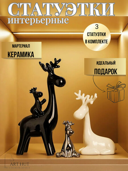 Размеры В комплекте 3 статуэтки Материал керамика Отличный подарок на любое торжество Современная декоративная статуэтка Семья состоит из трех отдельностоящих статуэток и изготовлена из качественной керамики Равномерная ручная шлифовка и обжиг при высокой температуре придают поверхности тонкую текстуру и однородный цвет. Все декоративные статуэтки для интерьера окрашены в нейтральные тона (Внимание: тон изделий может незначительно изменяться в зависимости от партии товара). Интерьерная статуэтка выполнена в лаконичном скандинавском стиле, и символизирует семью - мама, папа и ребенок. Статуэтки представлены в виде: жирафы жирафики, слоны слоники, кошки кошечки, абстрактные животные в скандинавском стиле Трогательный сюжет и милые зверюшки не оставят равнодушным каквзрослых, так и детей. Гости обязательно заметят этот необычный элемент декора, а статуэтка привнесет уют и тепло домашнего очага. Статуэтка для интерьера на день семьи, любви и верности. Статуэтка для декора отлично впишется в интерьер любого помещения будь то гостиная, прихожая, детская, спальня или кухня. Стильный элемент интерьерного декора прекрасно подойдет для подарка.