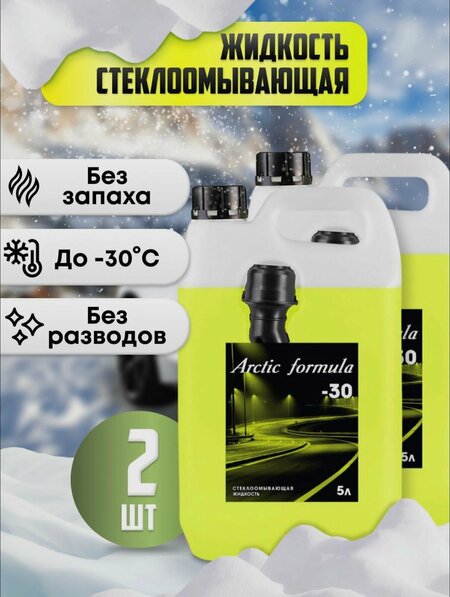 Стеклоомывающая незамерзающая жидкость зимняя для автомобиля - это эффективная очистка и дополнительная защита от налипания грязи при температуре до -30 градусов. Жидкость омывателя зимняя предназначена для очистки лобовых, боковых и задних стекол автомобиля в холодное время года вручную и при помощи стеклоомывателя. Стеклоомывающая жидкость Arctic Formula популярная у многих российских владельцев автомобилей независимо от марки и лошадиных сил. Она легко справляется с наледью на стеклах и фарах авто при температуре до –30 °С, не кристаллизуется на лобовом стекле. Используя незамерзающую жидкость оберегаете свой автомобиль от противогололедных реагентов. Arctic Formula продается в пятилитровых канистрах евро-типа. Заполненные емкости тяжелые, но заливать жидкость в стеклоочистители легко и удобно благодаря эргономичной ручке и лейке, которая идет в комплекте с канистрой. Канистры произведены из плотного пластика, не истираются и не трансформируются при транспортировке. Обладает всеми необходимыми сертификатами соответствия. Лучшая зимняя незамерзайка для вашего авто! Имеет свойство антилед, безопасна для щеток (дворников), форсунок, резиновых уплотнителей дверей. Лейка есть только у Arctic Formula. Без резкого запаха.
