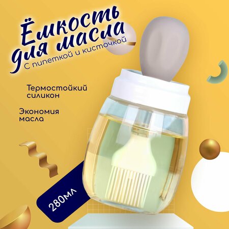 Стеклянная емкость с силиконовой кисточкой дозатором для растительного масла соуса уксуса. 280 мл Емкость для масла и уксуса с дозатором и силиконовой кисточкой станет отличным помощником на кухне для смазывания пищи. Масленка стекляная с кисточкой работает по принципу пипетки. Набирает нужное вам количество масла, жидкости, а также других жидких специй (соус, сироп, вино) и идеальна для равномерного нанесения на любые поверхности, заменяет распылитель, разбрызгиватель, диспенсер. Бутылочку очень удобно использовать для смазывания сковородок, противней, во время приготовления мяса, жаркого, блинов, салатов, выпечки, как дома так и на природе. Подходит для растительного, подсолнечного, оливкового, льняного масла, соевый соус. Изготовлена из не полимерных материалов: высококачественного стекла, нержавеющей стали и пищевого силикона и абсолютно безопасна для использования. Не боится горячих температур, а силиконовый дозатор с удобной мерной шкалой и кистью снижает расход и потребление. Ёмкость станет отличным подарком на любой праздник - Новый год, 8 марта, новоселье, день рождения. Для мамы, бабушки, жены, коллеги, любой домохозяйке, незаменимые аксессуары для дома и на кухне станут любимой посудой.