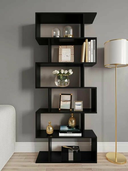 Высокий сборный стеллаж с интересным дизайном из ламинированного ДСП (ЛДСП) чёрного цвета — идеальный вариант для открытого хранения в любом уголке вашего дома! Данная модель шкафа состоит из 6 функциональных секций и выступающих полочек. Размеры готовой конструкции: 73x25x174 см. Размеры каждой секции — 49,6x25x27 см, что позволяет расставить книги, создав компактную домашнюю библиотеку, а также разместить, игрушки, декоративные фигурки и любую другую домашнюю мелочь. Сдвинув несколько таких стеллажей, можно создать перегородку с полками в гостиную. Сборный стеллаж с полками станет эстетичным помощником в детской комнате, гостиной, спальне, на кухне, на балконе или в офисе, обеспечивая удобное хранение вещей и организованное пространство. Его элегантный дизайн гармонично вписывается в интерьер. Создайте порядок и уют в вашем доме с этим универсальным и функциональным решением от нашей компании! Вы можете купить стеллажи различных размеров и цветов в нашем магазине!
