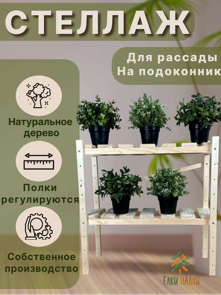 Стеллаж для рассады на подоконник, не занимающий большого пространства. Сборка стеллажа осуществляется на винты, за счет этого обеспечивается многоразовое использование, простота и скорость сборки. Вся необходимая для сборки фурнитура входит в комплект поставки. Полки стеллажа можно регулировать по высоте и переустанавливать по мере созревания рассады. Шаг регулировки 64 мм. Благодаря малому весу и компактной упаковке стеллаж легко транспортировать и хранить в межсезонный период. Деревянные стеллажи - экологически чистый продукт. Оригинальный стеллаж для цветов освободит подоконники, столы и другие поверхности в доме от ящиков с рассадой и цветочных плошек. Подставку для растений можно использовать в комнате, на балконе, на даче, в теплице или в саду.