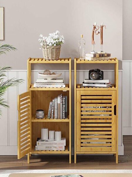 Преимущества стеллажа Bambuchka из бамбука Высокая влагостойкость и долговечность. Натуральный бамбук обладает природными свойствами, защищающими мебель от влаги, гниения и деформации, что особенно важно для использования в ванной, кухне и других влажных помещениях. Реечные дверцы для эффективной вентиляции. Конструкция дверец обеспечивает циркуляцию воздуха внутри стеллажа, предотвращая появление плесени и неприятных запахов, а также защищая содержимое от пыли. Компактные размеры и функциональность. При габаритах 33×33×85 см этот стеллаж занимает минимум места, но при этом оснащён несколькими полками, выдерживающими нагрузку до 20 кг, что позволяет удобно хранить разнообразные вещи. Экологичность и безопасность. Бамбук — это экологичный, гипоаллергенный материал, не выделяющий вредных веществ и безопасный для детей и домашних животных. Простой и быстрый монтаж. Лёгкая сборка без сложных инструментов и профессиональных навыков благодаря подробной инструкции и оптимальной конструкции. Натуральный светлый цвет и стильный дизайн. Мебель из бамбука придаёт интерьеру естественность и уют, легко вписываясь в любые стили — от классики до современного минимализма. Описание товара Стеллаж Bambuchka 33×33×85 см изготовлен из натурального влагостойкого бамбука, который отличается прочностью и стойкостью к влаге. Эта мебель предназначена для использования в условиях повышенной влажности, сохраняя свой внешний вид и функциональность на протяжении многих лет. Реечные дверцы стеллажа способствуют эффективной вентиляции, что особенно важно для хранения полотенец, косметики, бытовой химии и других предметов, чувствительных к влаге. Несколько вместительных полок выдерживают нагрузку до 20 кг, что делает стеллаж универсальным решением для самых разных задач. Компактные размеры позволяют использовать стеллаж даже в ограниченных пространствах — он идеально подойдёт для ванной комнаты, кухни, прачечной, балкона или небольших жилых комнат. Бамбук — экологичный и натуральный материал, который безопасен для здоровья, не выделяет токсинов и помогает создать в доме уютную и комфортную атмосферу. Сборка стеллажа проста и не требует особых навыков, что позволяет быстро и без лишних усилий организовать дополнительное место для хранения.