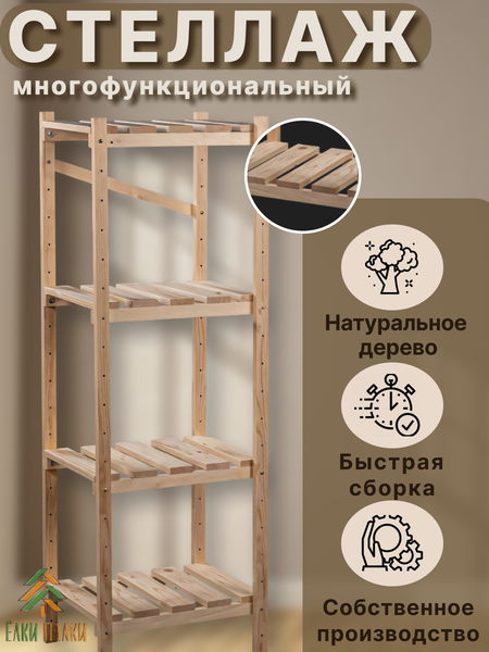 Стеллаж из массива сосны для дома 880х430х290мм / Этажерка деревянная на 4 полки Стеллаж изготовлен из массива сосны камерной сушки, что обеспечивает его прочность и долговечность. Толщина заготовки составляет 16 мм, что гарантирует устойчивость конструкции. Размеры стеллажа в собранном виде составляют 880 мм в высоту, 430 мм в ширину и 290 мм в глубину. Расстояние между полками регулируется с шагом 64 мм, что позволяет адаптировать стеллаж под ваши нужды. На стеллаже предусмотрено 4 полки, максимальная нагрузка на каждую из которых составляет 10 кг. Это позволяет размещать на стеллаже различные предметы, такие как книги, цветы или другие аксессуары. В комплект поставки входят стойка 880 мм (4 шт), полка 430х260 мм (4 шт), укосина 520 мм (1 шт), комплект винтов и инструкция по сборке. Поставляется в разобранном виде в упаковке, что облегчает транспортировку и установку стеллажа. Выбирая стеллаж из массива сосны для дома, вы получаете стильное и функциональное решение для хранения ваших вещей.