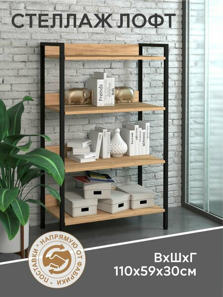 Стеллаж металлический напольный лофт 4 полки - это стильное и функциональное решение для вашего дома или офиса. Он выполнен в стиле лофт, который придаст помещению особую атмосферу и простор. Стеллаж изготовлен из ЛДСП толщиной 16 мм с матовой поверхностью в цвете дуб крафт золотой. Металлические основания стеллажа изготовлены из профильной трубы 20х20 мм и окрашены черной порошковой полимерной матовой краской. Это обеспечивает прочность и долговечность конструкции. Стеллаж имеет 4 полки, максимальная нагрузка на каждую из которых составляет 25 кг. Открытая конструкция стеллажа без задней стенки позволяет легко организовать пространство и обеспечивает свободный доступ к содержимому. Особенностью конструкции стеллажа являются регулируемые ножки, которые позволяют установить его на неровной поверхности. В комплект поставки входят стеллаж, фурнитура и инструкция по сборке. Вес стеллажа составляет всего 13 кг, что облегчает его транспортировку и установку. Стеллаж металлический напольный лофт 4 полки подойдет для использования в различных помещениях: для ванной, для дачи, для дома, для кухни, для офиса и для школы. Целевая аудитория включает как взрослых, так и детей. Выбирая стеллаж металлический напольный лофт 4 полки, вы получаете стильное и функциональное решение для своего дома или офиса, которое облегчит вашу жизнь и поможет организовать пространство.