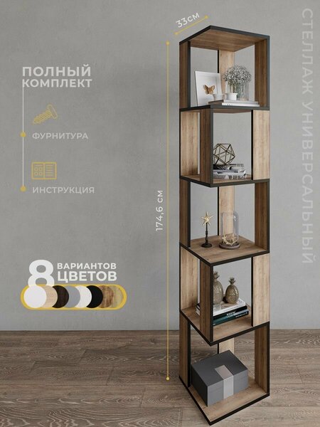Видео инструкция по сборке находится в галерее с фотографиями. Универсальная идея для дома, квартиры и дачи. Открытая мебель система хранения в 5 полок, не требующая трудных интерьерных решений, практичное и лаконичное изделие, в комплекте есть подпятники! Это качество позволяет установить напольный стеллаж в квартирах и офисах. Шкаф лофт позволит вместить на себе главные для вас фотографии, любимые книжки или документы. Открытые полки обладают современным дизайном фи будут органично смотреться в спальне, прихожей, гостиной и детской. Мебель для ванной проста и современна по стилю, дополняет предметы интерьера и помогает создать комфортное пространство. Его можно использовать не только как книжный шкаф, но и как дополнение к интерьеру в гостиной, ванной, спальне. Компактное вертикальное строение книжной полки позволяет в полной мере использовать область для поддержания порядка в вашем доме. Установив угловой шкаф в любое помещение в доме, вы приобретаете место для хранения личных вещей, сувениров, косметики и книг. Он может быть идеально интегрирован с духом вашего дома и прибавить чувство современности к вашему имеющемуся домашнему уюту. Произведенная из качественных материалов, кромка устойчива и долговечна. Этот стеллаж для вещей обустроен просторными полками, на которых достаточно места для хранения и презентации чего угодно, например коллекционных вещей, книг, безделушек, фото в рамках. Так же применяется для икон, полотенец или медалей. Возможно скомплектовать с любым дизайном. Мебель в детскую комнату и стеллаж для игрушек. Конструкция с квадратным профилем будет незаменима в качестве этажерки для домашних растений и цветов или как органайзер для игрушек и книжек в детской комнате. Этажерка деревянная может быть подставкой под посуду или сушилкой для посуды. Эта мебель для детей проста и современна по форме, дополняет предметы убранства и помогает создать комфортное пространство. Его можно использовать не только как обычная стенка, но и как дополнение к гостиной, ванной, спальне. Детский шкаф из ЛДСП, который идеально подойдет для вашей спальни, гостиной, кухни или офиса. Дизайн открытых полок для хранения обеспечит идеальное место для демонстрации ваших украшений. Он хорошо работает в качестве книжной полки для с максимальной вместимостью, занимая при этом небольшую область. Для стеллажа используются сертифицированные, высококачественные ЛДСП класса Е1. Наша белая мебель (венге) в прихожую в стиле лофт, бохо, занимает меньше места, чем настенный шкаф. Чтобы наша продукция доезжала в целости мы используем упаковку с крепким картоном. Ещё больше товаров в "Философия Уюта"!