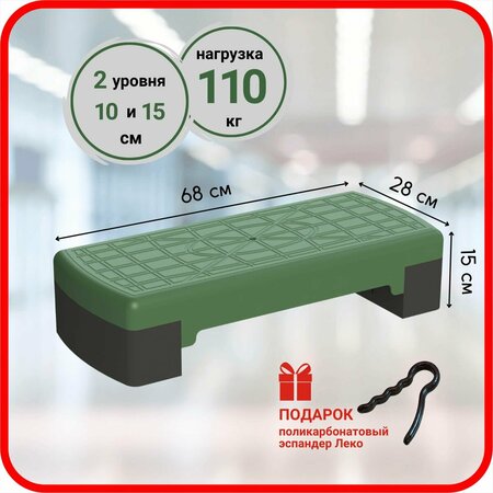 Степ-платформа Leco с регулируемой высотой –спортивный инвентарь для занятий степ-аэробикой, танцами и фитнесом. Используется для повышения нагрузки при выполнении кардио и силовых упражнений. Степплатформа подходит для эффективного выполнения различных упражнения дома и в зале. Тренажер для ног подходит для любого уровня спортивной подготовки. Регулярные занятия с платформой для степ-аэробики Leco укрепляют мышцы, способствуют похудению, улучшают работу сердечно-сосудистой системы, предотвращают развитие остеопороза и артроза, улучшают осанку, повышают выносливость и координацию. Габариты платформы (два уровня): 68х28х15 см, (один уровень): 68х28х10 см.