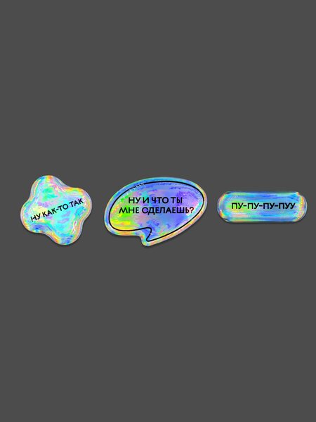 Хотите выделиться из толпы и придать своему телефону неповторимый стиль? Тогда набор объемных стикеров на телефон с надписями: "Ну как-то так", "Ну и что ты мне сделаешь?", "Пу-пу-пу" от Подписных изделий - именно то, что вам нужно! Этот креативный и необычный аксессуар станет ярким акцентом на вашем гаджете и подчеркнет вашу индивидуальность. Наклейка выполнена из высококачественных материалов, которые не только прочны и долговечны, но и легко наносятся и снимаются без остатков клея. Благодаря объемной текстуре стикера, ваш телефон будет выглядеть стильно и оригинально, привлекая внимание окружающих. Это не просто надписи, это целая история, которая может быть понята по-разному. Этот стикер подойдет как для тех, кто любит шутки и юмор, так и для тех, кто ценит философский подход к жизни. Он станет отличным подарком для друзей или близких, добавив немного позитива и хорошего настроения в их повседневную жизнь. Не упустите возможность приобрести этот уникальный аксессуар и подарить своему телефону новый облик! Стикеры с надписями на телефон - ваш выбор в пользу стиля, креативности и оригинальности. Размеры: 31*11 мм 36*24 мм 25*25 мм