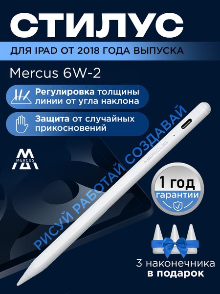 Стилус Active Pencil MERCUS 6W-2 белый для iPad Pro, Air, mini от 2018 года выпуска, для планшетов Apple