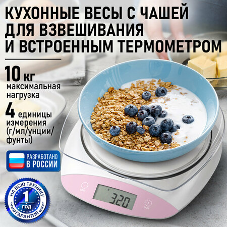 Весы кухонные с чашей, 10 кг. Цена деления: 1 г, пластиковый корпус, чаша, LCD дисплей, функция "Тара", индикатор температуры/перегрузки/замены батареи. Ед. измерения г/унция, 2 батареи 1.5 В AA (в комплекте). Кухонные весы с чашей для продуктов, функцией «тара» и жидкокристаллическим дисплеем. Обеспечивают надежное взвешивание продуктов массой до 10 килограммов с точностью до 1 грамма и способны работать в различных единицах измерения. Функция «тара» позволяет не учитывать массу посуды при взвешивании продуктов, а индикаторы перегрузки и замены батареи сделают работу весов бесперебойной в течение длительного времени. Не весы напольные для ЗОЖ, для ПП. гаджет для кухни Весы кухонные электронные для дачи, для кухни, для похудения. Устройство прекрасно подходит для определения веса ягод, фруктов, овощей, конфет, мяса, а также сахара, муки, гречки, риса и прочих сыпучих продуктов. Кухонный девайс для здоровое питание. Весы точные для детское питание. Не кухонные весы с чашей для домашних заготовок.