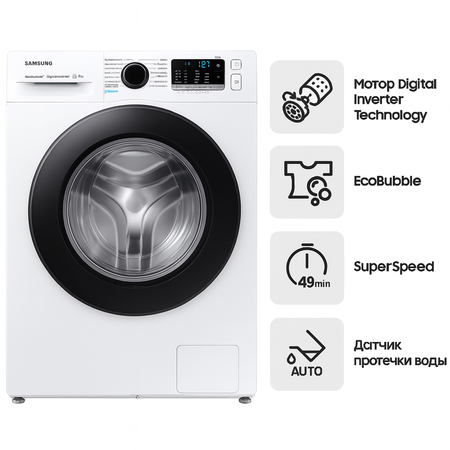Samsung WW80AGAS26AELD — это стильная и надежная стиральная машина с функцией пара и современной инверторной технологией. Благодаря глубине всего 45 см она идеально подойдёт даже для небольших ванных комнат, сохраняя при этом вместимость до 8 кг. Инверторный мотор обеспечивает тихую и экономичную работу, а функция гигиенической паровой обработки эффективно удаляет загрязнения и аллергены. Максимальная скорость отжима — 1200 об/мин, что ускоряет сушку белья.