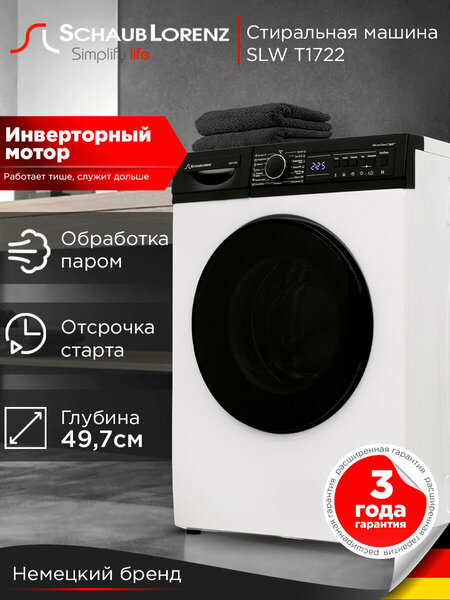 Стиральная машина Schaub Lorenz SLW T1722 — идеальный выбор для тех, кто ценит качество и компактность. Эта узкая стиральная машина на 7 кг легко впишется в ограниченное пространство, не жертвуя при этом функциональностью. С максимальной скоростью отжима 1400 об/мин она эффективно избавляет ткани от влаги, сокращая время сушки. Энергетический класс А+++ гарантирует экономичное потребление электроэнергии, позволяя вам не только сэкономить на счетах, но и заботиться об экологии. Эта стиральная машина предлагает множество полезных функций, включая режим стирки с использованием пара, который помогает бережно удалять загрязнения, заботясь о ваших вещах. Функция половинной загрузки обеспечивает удобство применения, позволяя использовать машину даже при небольшом количестве белья, что особенно актуально при ежедневной стирке. Стиральная машина оснащена функцией отсрочки запуска, которая позволяет вам настроить время стирки по своему графику — будь то утренние часы или поздний вечер. С высокой надежностью и современным дизайном, эта узкая стиральная машинка не только украсит ваш интерьер, но и станет незаменимым помощником в уходе за одеждой. Вы сможете уверенно доверять ей свои вещи, зная, что она обеспечит бережную и качественную стирку. Schaub Lorenz SLW T1722 — это разумное решение для каждой семьи, желающей оптимизировать домашние дела без лишних затрат времени и ресурсов.
