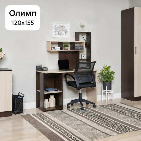 Стол письменный Олимп – универсальное решение для вашего рабочего пространства. Этот стильный и функциональный стол идеально подходит для офисного и домашнего использования. Стол компьютерный выполнен в сочетании цветов венге и дуб белфорд, что позволяет ему вписаться в любой современный интерьер и гармонировать со шкафами, тумбами и комодами. Стол письменный оснащен надстройкой с удобными полками, которые обеспечат достаточно места для хранения офисных принадлежностей, документов и личных вещей. Произведенный из ЛДСП, Стол письменный для школьника обладает высокой стойкостью и долговечностью, что гарантирует длительный срок его эксплуатации. Ширина стола составляет 120 см, глубина 50 см, высота 155 см. Стол письменный Олимп от бренда Нонтон станет надежным помощником в учебном или рабочем процессе.