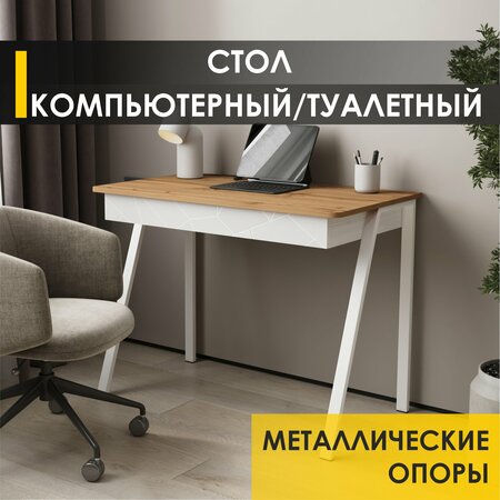 Компьютерный стол выполнен в теплых оттенках натурального дерева, которые создают уютную атмосферу и ощущение близости к природе, а контрастные металлические опоры белого цвета подчеркивают стильный дизайн изделия. Благодаря современному дизайну и утонченному внешнему виду письменный стол гармонично впишется в любой интерьер. Это универсальный вариант для любых пространств и отличное решение для тех, кто хочет идти в ногу со временем. Имитация натуральной древесной текстуры создает ощущение уюта. Природная красота экостиля добавляет модную нотку Вашему интерьеру. Линейка товаров «Venerdi» создана с учетом многолетнего опыта разработки и производства мебели. Эта мебель произведена на одной из крупнейших фабрик России. Вы всегда можете связаться с нами по вопросам качества товара. Стол письменный школьный отлично подойдет для стиля лофт и подчеркнет его функциональность и практичность.