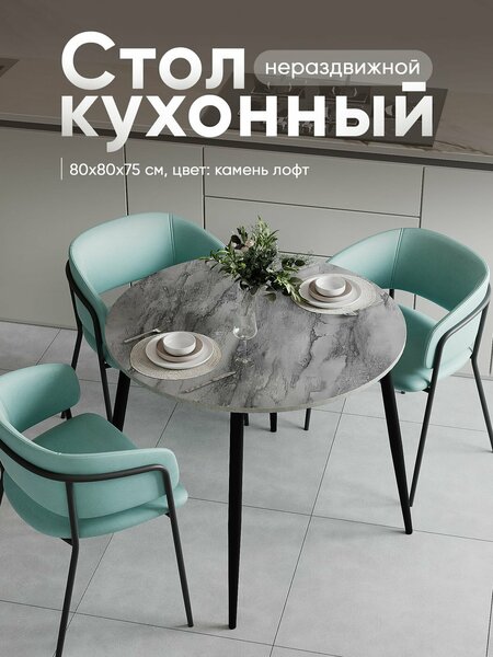 Стол нераздвижной Круглый - презентабельная и гармоничная модель. Этот обеденный стол отлично впишется в любой интерьер и придаст ему уюта. Эргономичная круглая форма, опоры из металла окрашенные порошковой краской, качественная фурнитура выгодно выделяют этот обеденный стол среди других. Плотная 1 мм ПВХ кромка обеспечит защитой торец столешницы и придаёт 3D объём. Легкая сборка - вам останется только прикрутить ножки. Столешница изготовлена из фактурного ЛДСП в различных цветовых решениях. Заводская надёжная упаковка из крепкого, плотного 5-и слойного картона поможет добраться столу до Вас в целости и невредимости. Действует гарантия на мебель и кухонные столы от производителя 12 мес.