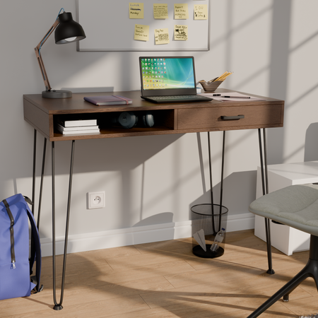 Этот стильный и практичный компьютерный письменный стол с ящиком на ножках - идеальное решение для всех ваших рабочих потребностей. Сочетание высокого качества и функциональности делает его отличным выбором для домашнего офиса, студенческой комнаты или игровой зоны. Зачем вам нужен этот стол? - Уникальные металлические ножки обеспечивают надежную и стабильную поддержку, не шатаясь и не скрипя. - Большая рабочая поверхность предлагает достаточно места для работы на компьютере или письменных дел. - Встроенный ящик предлагает удобное хранение для ваших сопутствующих предметов и аксессуаров. Этот компьютерный письменный стол сочетает в себе стиль и функциональность, делая его идеальным для любого интерьера. Его элегантный дизайн с металлическими ножками и золотыми наконечниками дополнит любую комнату, от гостиной до детской. Будь то для работы, учебы или игр, этот стол будет служить вам верой и правдой. Закажите этот стол с ящиком на ножках прямо сейчас и обновите свое рабочее пространство с комфортом и стилем.