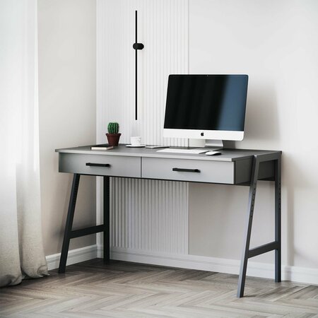 Мощный письменный или компьютерный стол Курс от фирмы Make Mebel с меняющейся высотой. Высота меняется от 58 см до 75 см, шаг 2,8 см. Качественная ЛДСП от фирмы Ламарти. Цвет Вулканический серый. Подстолье из стали с порошковой покраской. Размер столешницы 120х60 см. Высота тумбы 13,5 см.