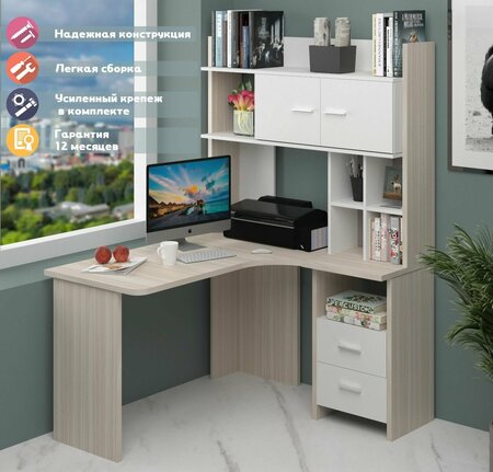 Стол компьютерный угловой серии Домино Лайт - это простое и удобное решение для любой комнаты. Он представлен в пяти цветах, включая карамель и белый, что позволяет подобрать наиболее подходящий вариант для вашего интерьера. Столешница и корпус стола изготовлены из прочного ЛДСП, что гарантирует надежность и долговечность конструкции. Механизм стола обеспечивает плавное и легкое движение ящиков, а также надежную фиксацию полок. Стол оборудован двумя ящиками и надстройкой, что позволяет хранить книги, журналы и другие предметы. Благодаря наличию полок, вы сможете разместить все необходимые вещи под рукой. В комплект входит инструкция и набор фурнитуры, что облегчит процесс сборки и установки стола. Размеры стола составляют 130 см в ширину, 178 см в высоту и 120 см в глубину. Расположение угла справа делает его удобным для использования в небольших помещениях. Материал столешницы - ЛДСП толщиной 2,5 см, что обеспечивает прочность и устойчивость к повреждениям. Цвет товара - карамель/белый, покрытие - матовое, что придает столу элегантный и современный вид. Вес стола составляет 85 кг, что говорит о его надежности и устойчивости. Тип направляющих - роликовые, что обеспечивает плавное и бесшумное движение ящиков. Стол компьютерный угловой серии Домино Лайт - это стильное, функциональное и практичное решение для вашего дома.