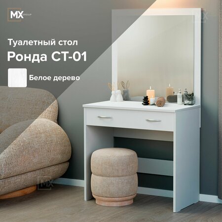 Туалетный столик Ронда мебельной фабрики "Боринское" украсит любую комнату вашего дома. Отличается лаконичным и современным дизайном, что позволит вам каждое утро наслаждаться уходовыми процедурами. Деревянное исполнение. Материал фасада, столешницы и подстолья - ЛДСП с ламинированным покрытием. Ширина - 80 см Глубина - 43 см Высота - 114 см Цвета исполнения: белое дерево; венге/дуб белфорд; сосна карелия; ясень шимо светлый/ясень шимо темный Гарантия 12 месяцев. Доставляется в разобранном виде. Монтаж зеркала производится на двусторонний скотч. Для крепления рекомендуется дополнительно использовать монтажный клей. В нашем каталоге Вы найдёте всё, что нужно для уюта Вашего дома: шкафы, комоды, столы, прикроватные тумбы и многое другое. Следите за скидками и акциями МХ-Групп! Порадуйте себя и родных новыми приобретениями. Если у Вас остались вопросы, напишите нам, мы с радостью ответим!