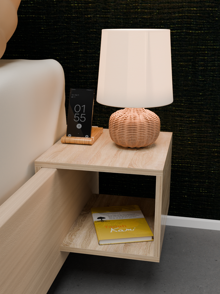 Если вы ищете стильное и функциональное решение для хранения мелочей в спальне, обратите внимание на наш парящий прикроватный столик-тумбочку. Этот уникальный элемент мебели сочетает в себе современный дизайн и удобство использования, позволяя эффективно организовать пространство и обеспечить легкий доступ к важным вещам. Крепящаяся к кровати полочка идеально подходит для любых интерьерных стилей, будь то современный или классический. Компактные размеры позволяют ей вписаться в даже самые небольшие комнаты, освобождая пространство на полу. На такой прикроватной полке удобно разместить ночник, книгу или стакан с водой, что делает её не только красивым, но и практичным элементом. Подойдет для кроватей с шириной бортика от 16 до 22 мм.