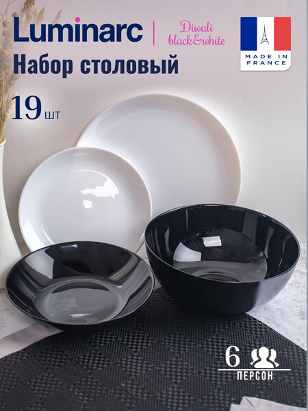 Столовый набор LUMINARC Diwali: элегантный и функциональный Столовый набор LUMINARC Diwali состоит из 19 предметов, включая 6 обеденных тарелок диаметром 27 см, 6 десертных тарелок диаметром 19 см, 6 глубоких черных суповых тарелок и 1 большой черный салатник. Изготовлен из высококачественного стекла, этот столовый набор отличается прочностью и долговечностью. Благодаря этому, он будет служить вам долгие годы, сохраняя свой первоначальный вид. Сервиз подходит для использования в микроволновой печи и посудомоечной машине, что значительно облегчает его уход и экономит ваше время. Дизайн столового набора LUMINARC Diwali выполнен в черно-белой цветовой гамме, что делает его стильным и элегантным. Отсутствие узора на посуде придает ей современный и минималистичный вид. Произведенный во Франции, этот столовый набор станет отличным выбором для любого праздника или торжества, будь то Новый год, день рождения, 8 Марта, Пасха, Хэллоуин, День святого Валентина, 23 Февраля или Новоселье. Выбирая столовый набор LUMINARC Diwali, вы получаете не только стильный и функциональный набор посуды, но и гарантию качества и долговечности от известного французского производителя.
