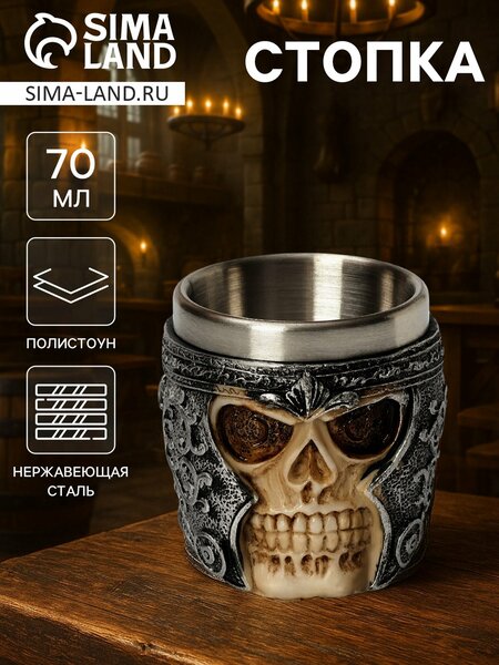 Стопка из нержавеющей стали «Череп в шлеме. Хэллоуин» объемом 70 мл представляет собой уникальное сочетание функциональности и стиля. Стопка для водки выполнена из нержавеющей стали, что гарантирует ее долговечность и устойчивость к коррозии. Внутренняя часть изделия также изготовлена из нержавеющей стали, что обеспечивает безопасность использования и легкость в уходе. Стопка станет отличным дополнением к вашему столу или частью вашей готической коллекции. Стопка для виски «Череп в шлеме» подходит для использования в коктейлях и других напитках. Благодаря своему объему в 70 мл, она позволяет насладиться вкусом напитка, не теряя его аромата. Выбирая стопку из нержавеющей стали «Череп в шлеме. Хэллоуин», вы получаете стильный и функциональный аксессуар, который станет отличным подарком для любителей необычных вещей.