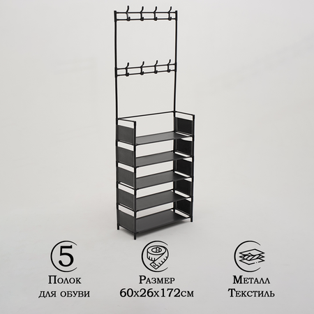 Стойка для одежды с полками для обуви LaDо́m, 5 ярусов, 60×26×172 см, цвет чёрный